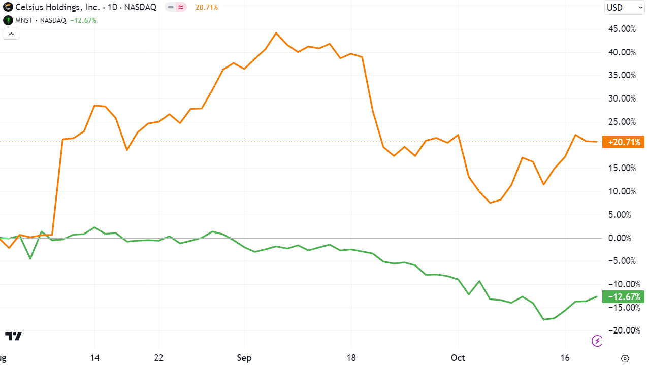 Since then, CELH is up 20.7% while MNST is down 12.7%. This relative performance is likely to continue.