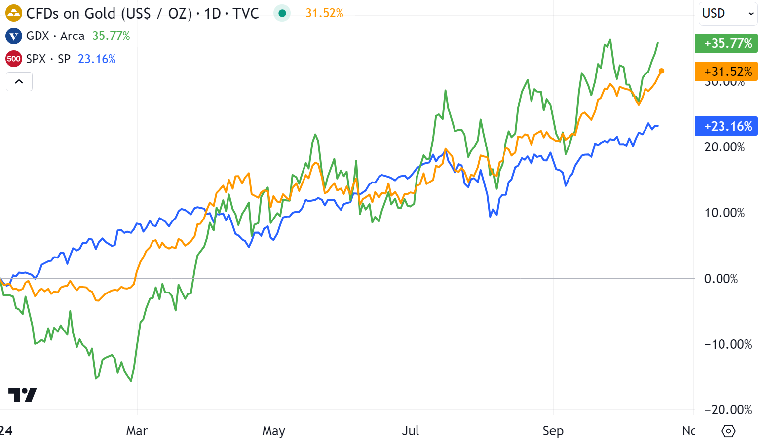 As the global monetary easing cycle begins, the price of precious metals has soared. Yesterday, gold traded at a new all-time high—over $2,700 per ounce—up 32% since the start of the year, even outpacing a monster year for U.S. stocks. Gold miners have followed bullion higher, rising 36% year-to-date.